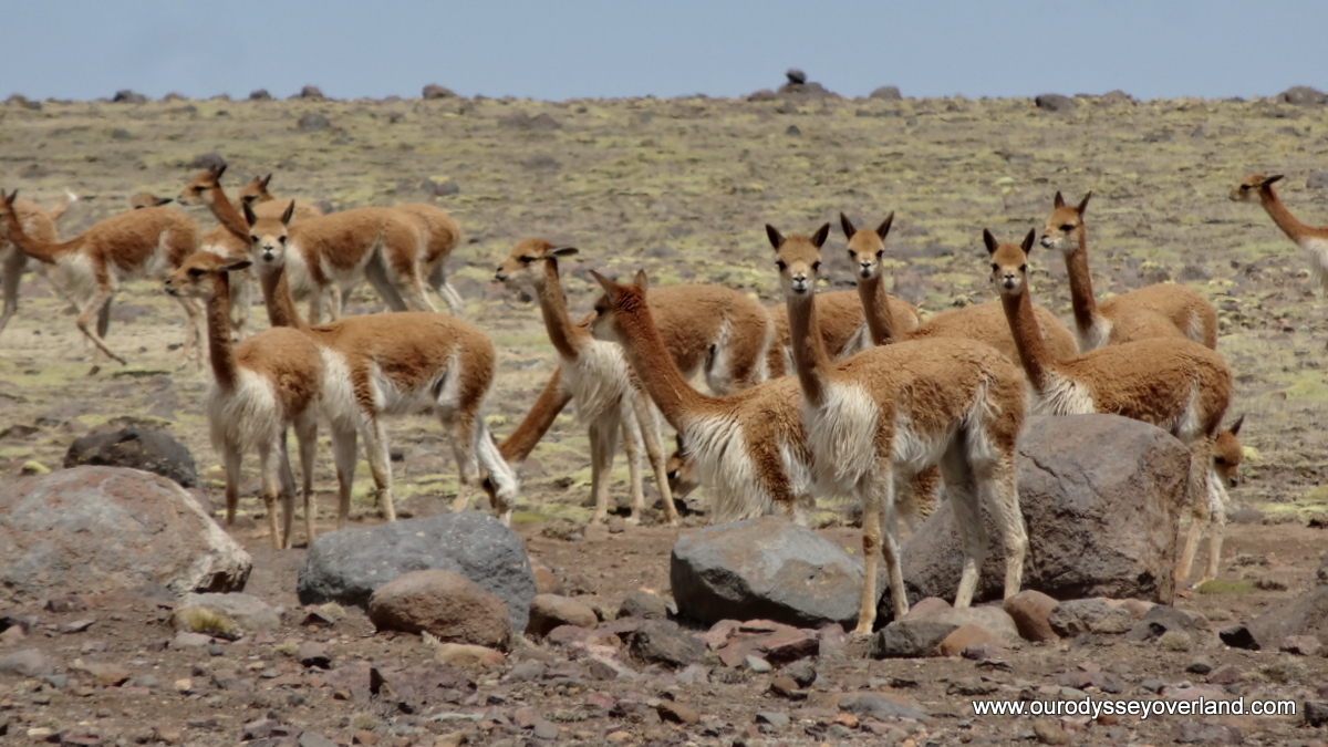 The highway passes through a vicuna reserve. A relative of the llama, vicuna wool is prized for its warmth and softness. During Incan times and today, they are protected by law.